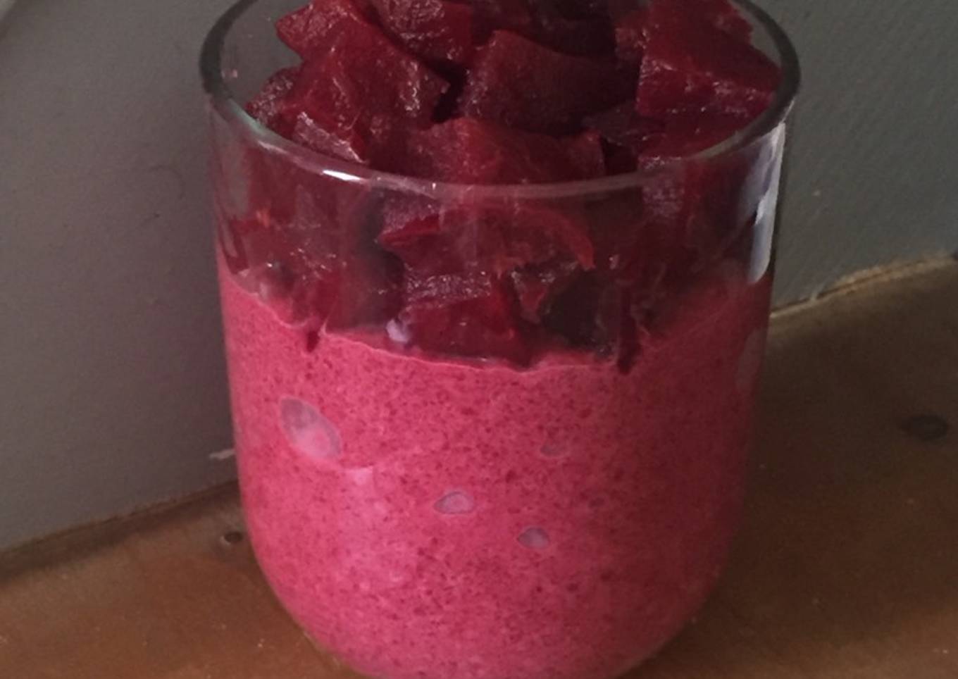 - Ajouter des morceaux de betteraves sur votre mousse. Réserver au frais jusqu’à la dégustation 😊