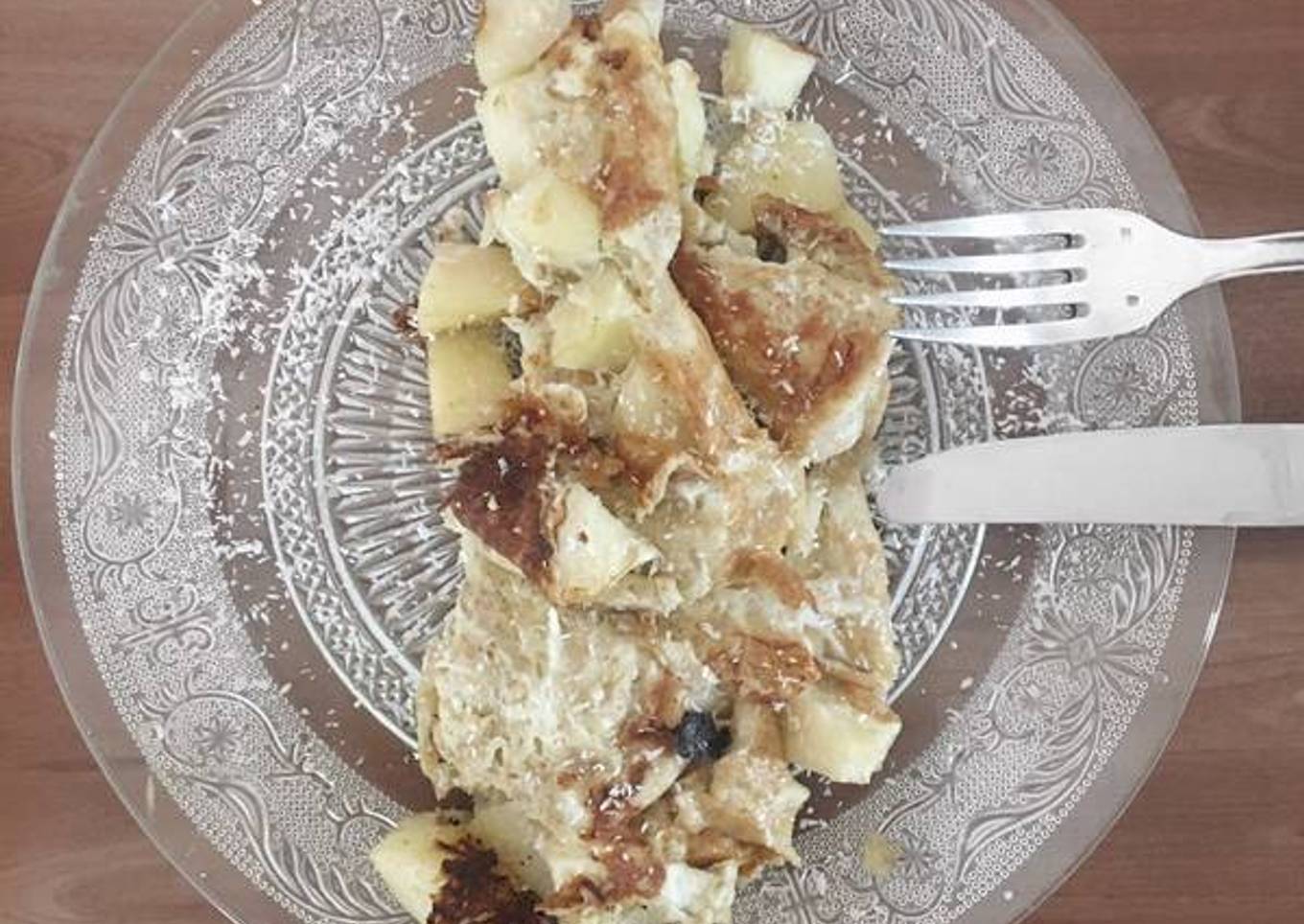 - Faire revenir les pommes dans une poêle. Mélanger le reste des ingrédients et verser sur les pommes.